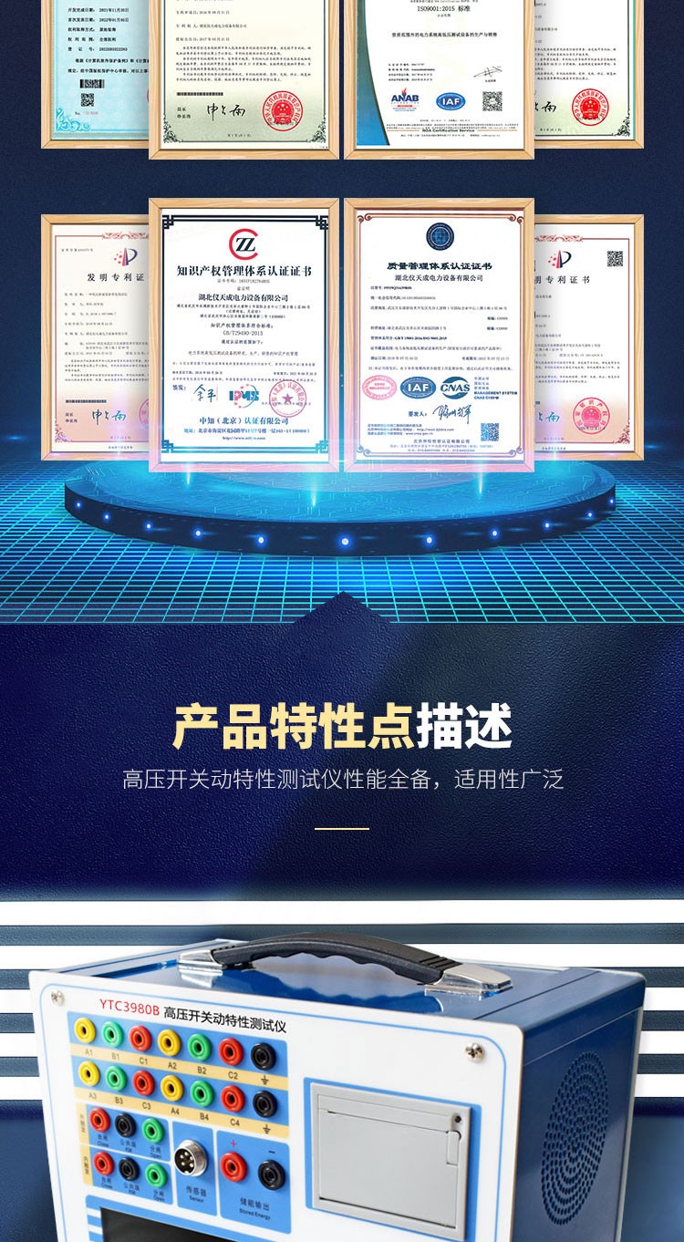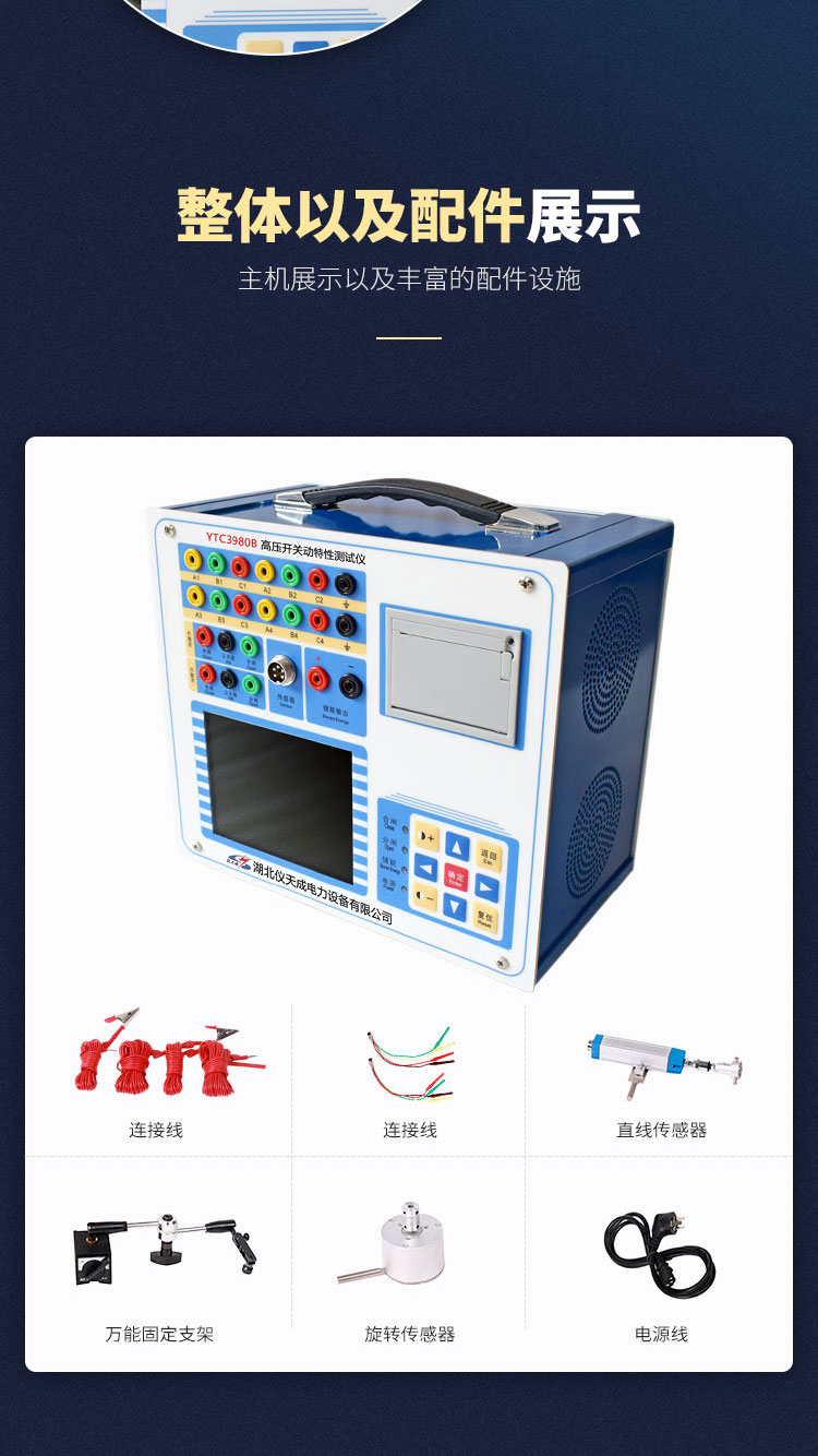 YTC3980B断路器特性测试仪采用液晶大屏幕显示,测试结果可直接打印,该断路器动特性分析仪具有智能化、功能多、数据准确、抗干扰性强、操作简单、体积小、重量轻、外观美等优点。