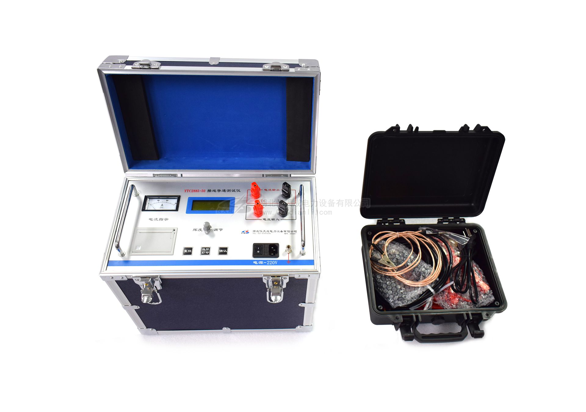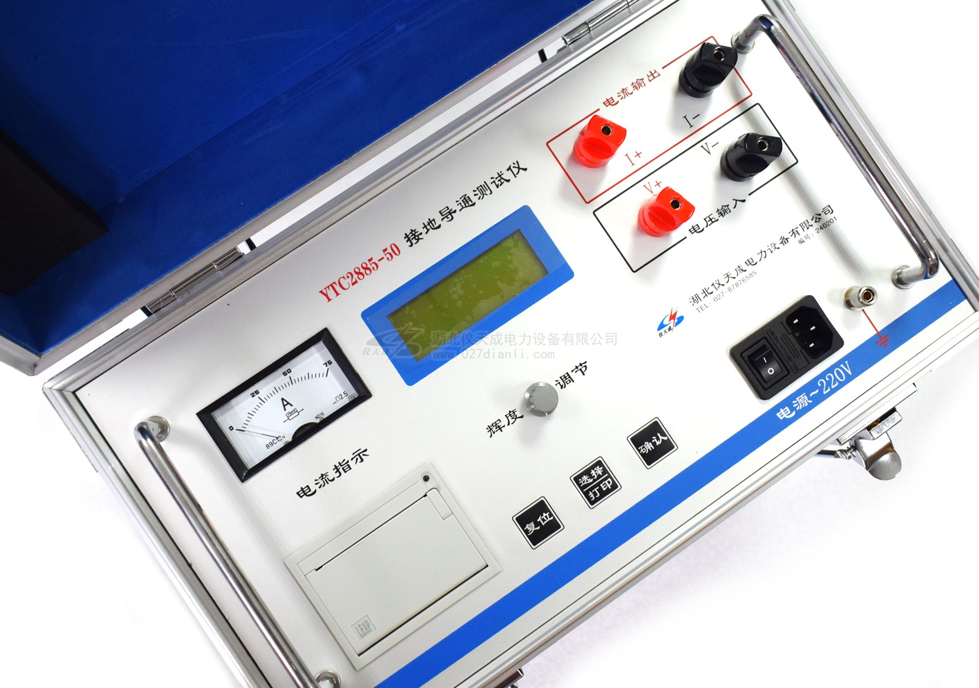 YTC2885-50接地导通测试仪是我公司研制的一种自动化程度很高的便携式测试仪,用于变电站内各个电力设备接地引下线之间的导通电阻值的测量。仪器采用高性能单片机控制,可实现测试过程智能化,具有体积小,携带方便,操作简单,精度高,测试速度快,复测性好,读数直观,是符合规程要求的理想专用仪器。